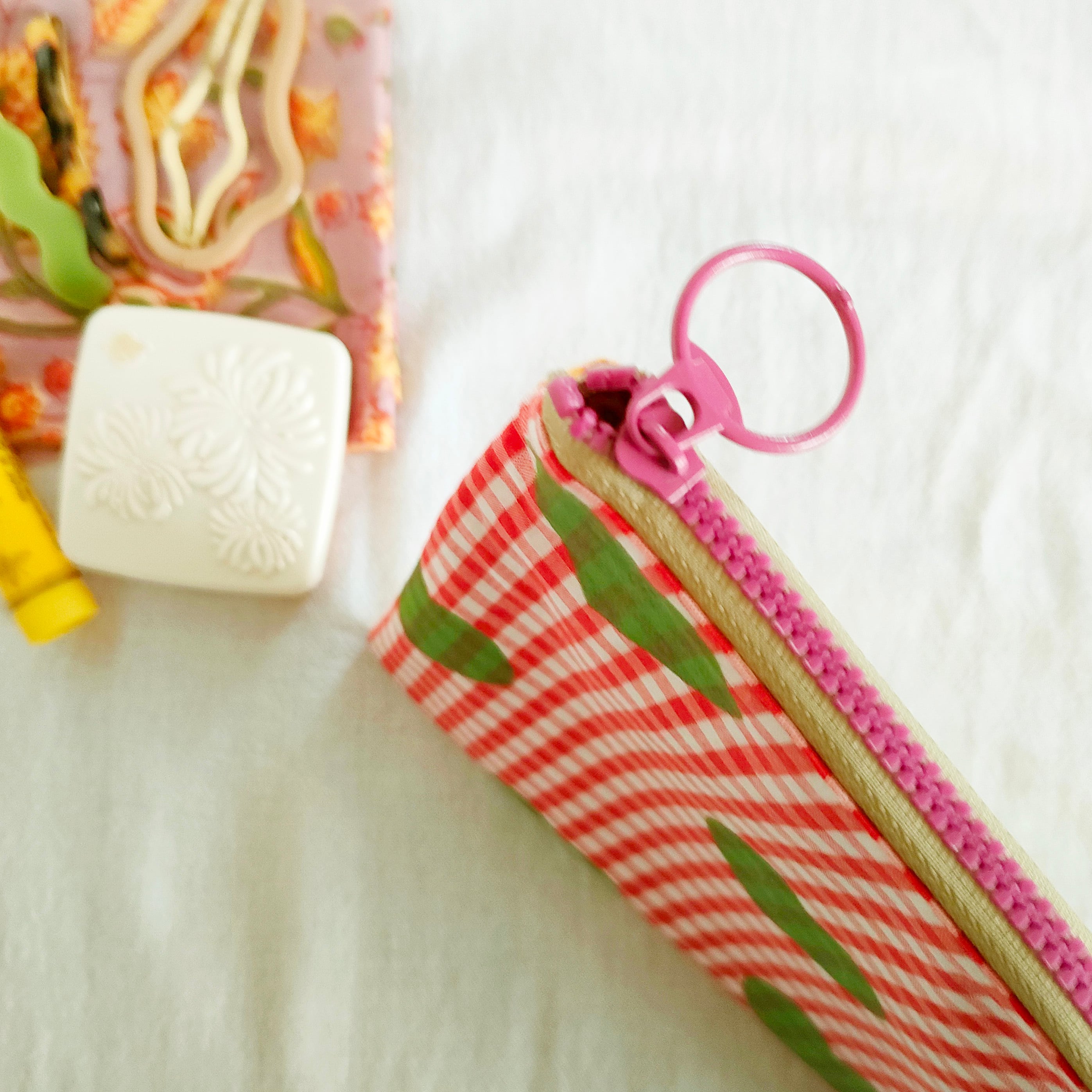 また、ポーチなどの場合の開き口はファスナー金具がございますので、