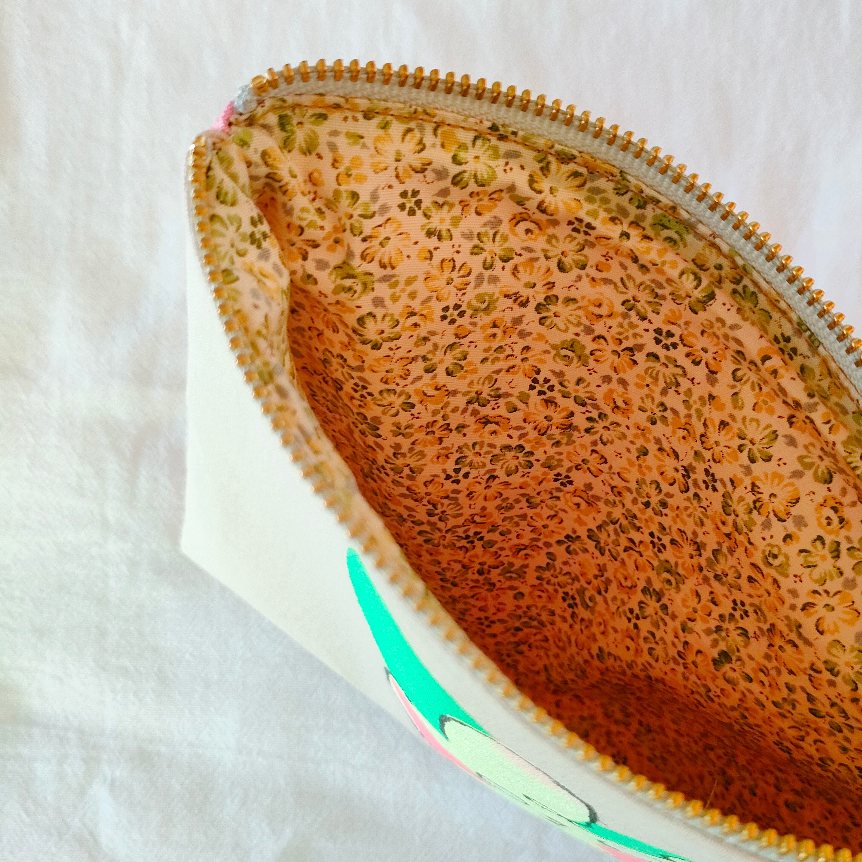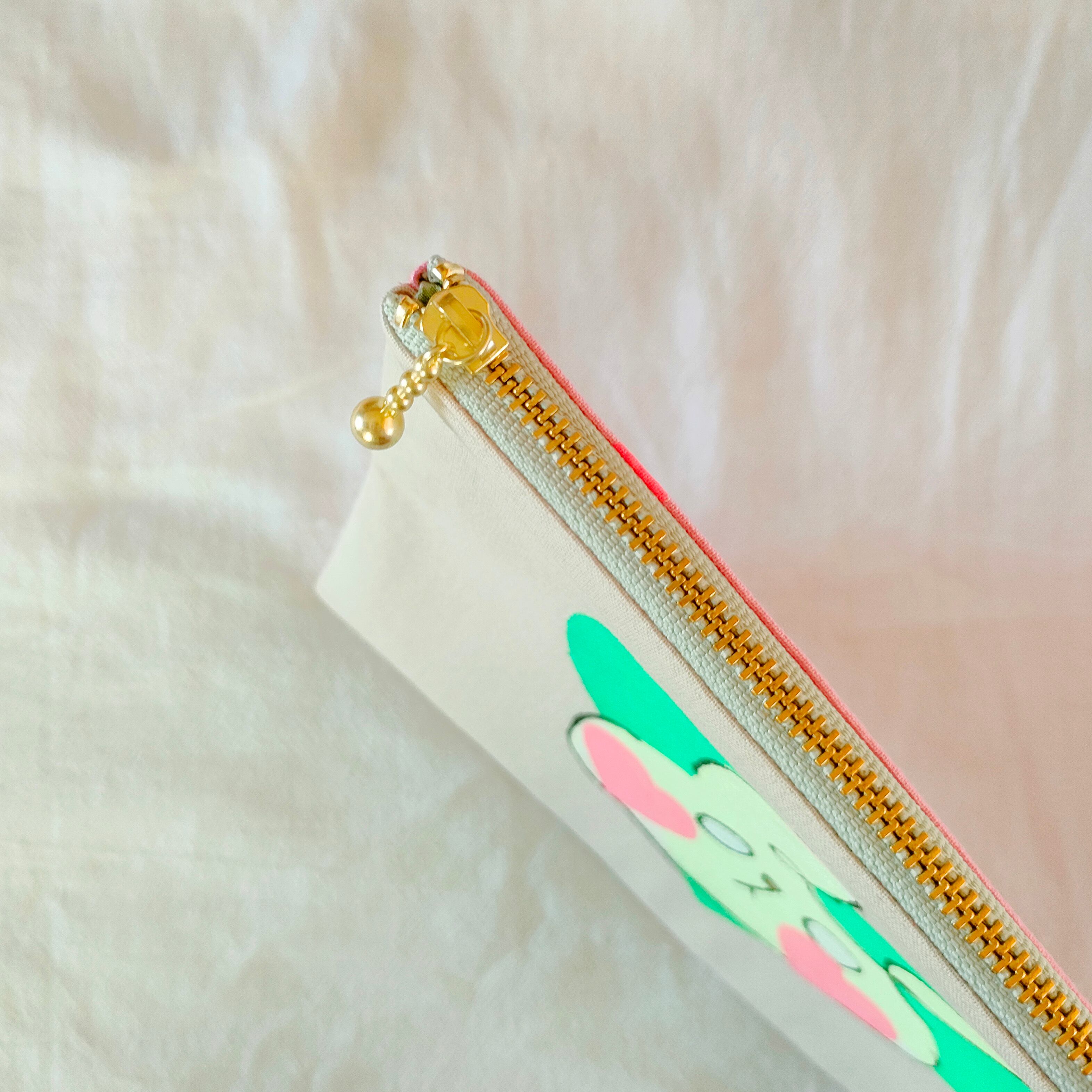 また、ポーチなどの場合の開き口はファスナー金具がございますので、