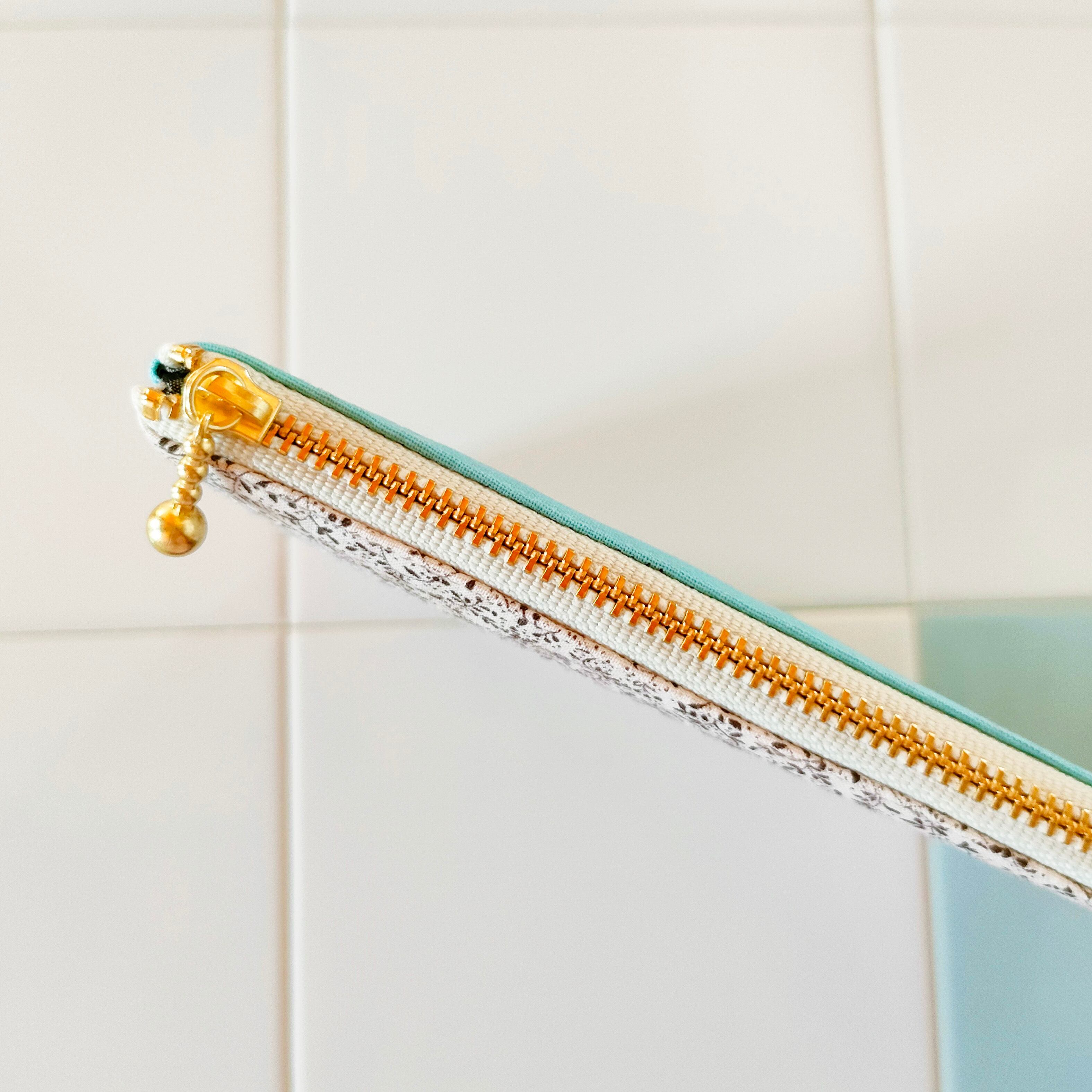 また、ポーチなどの場合の開き口はファスナー金具がございますので、