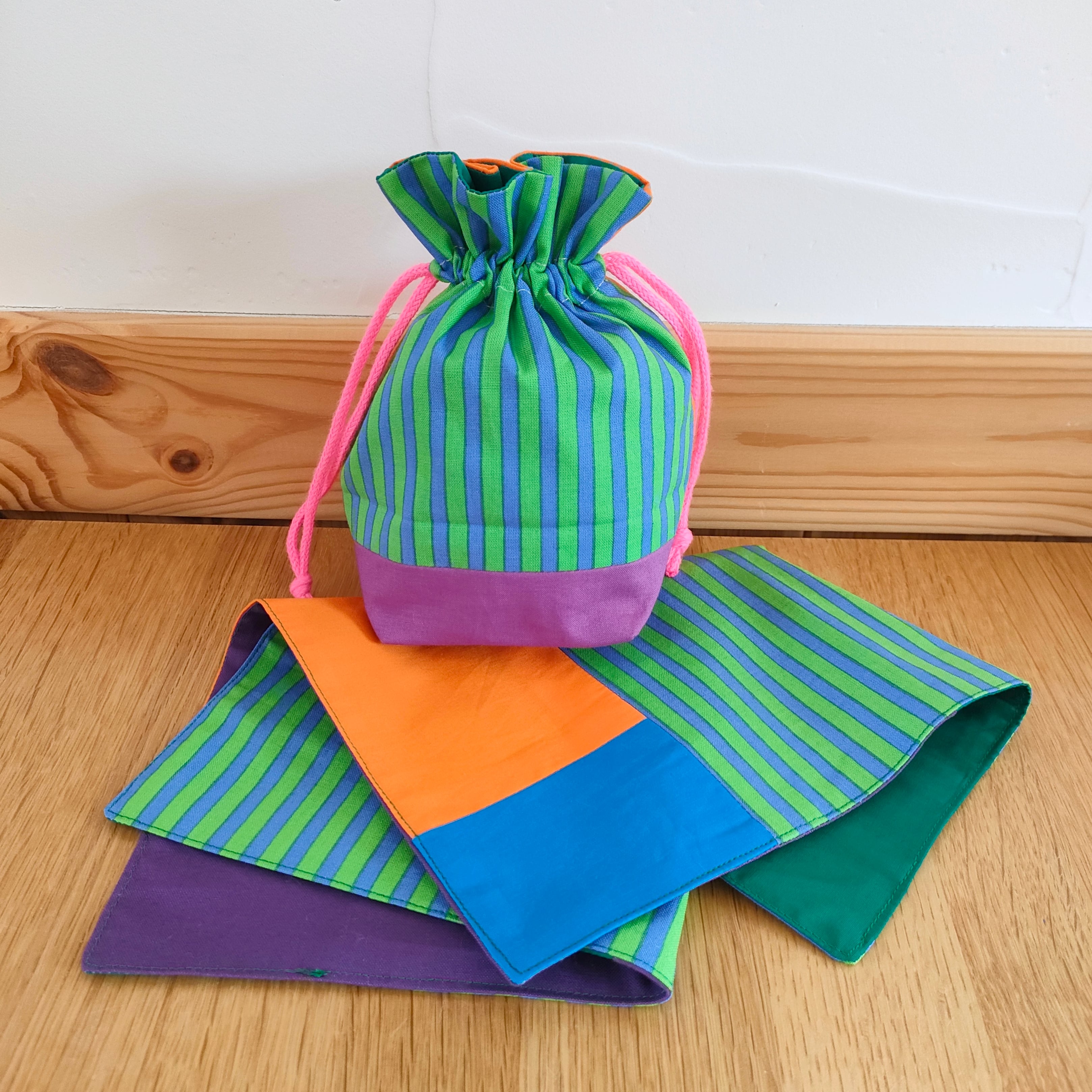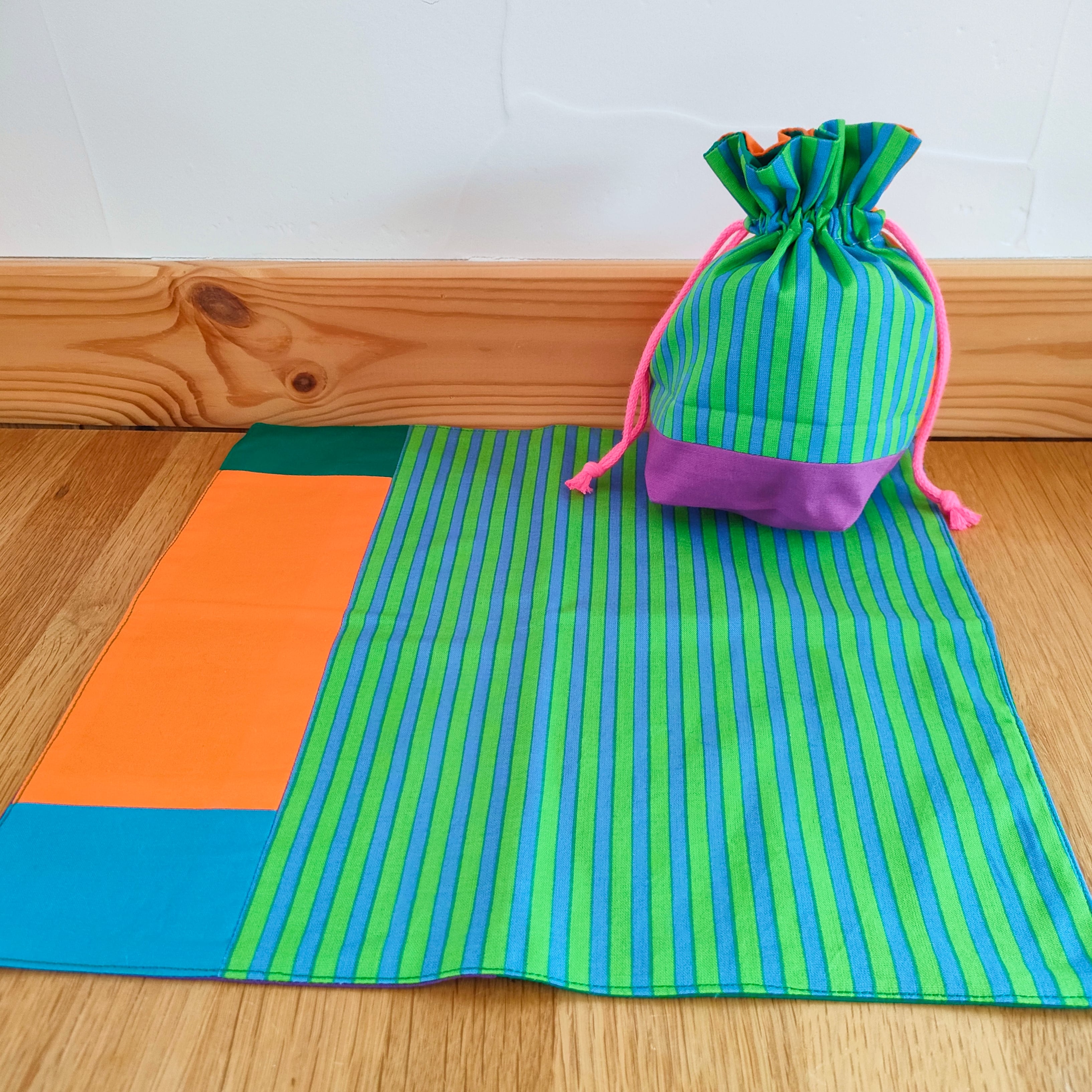 ✩ ˎˊ カラフルパッチワークの巾着