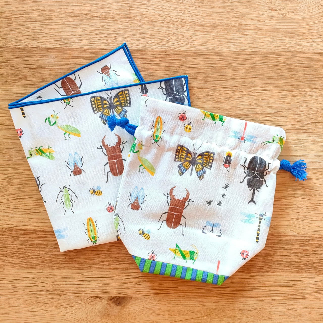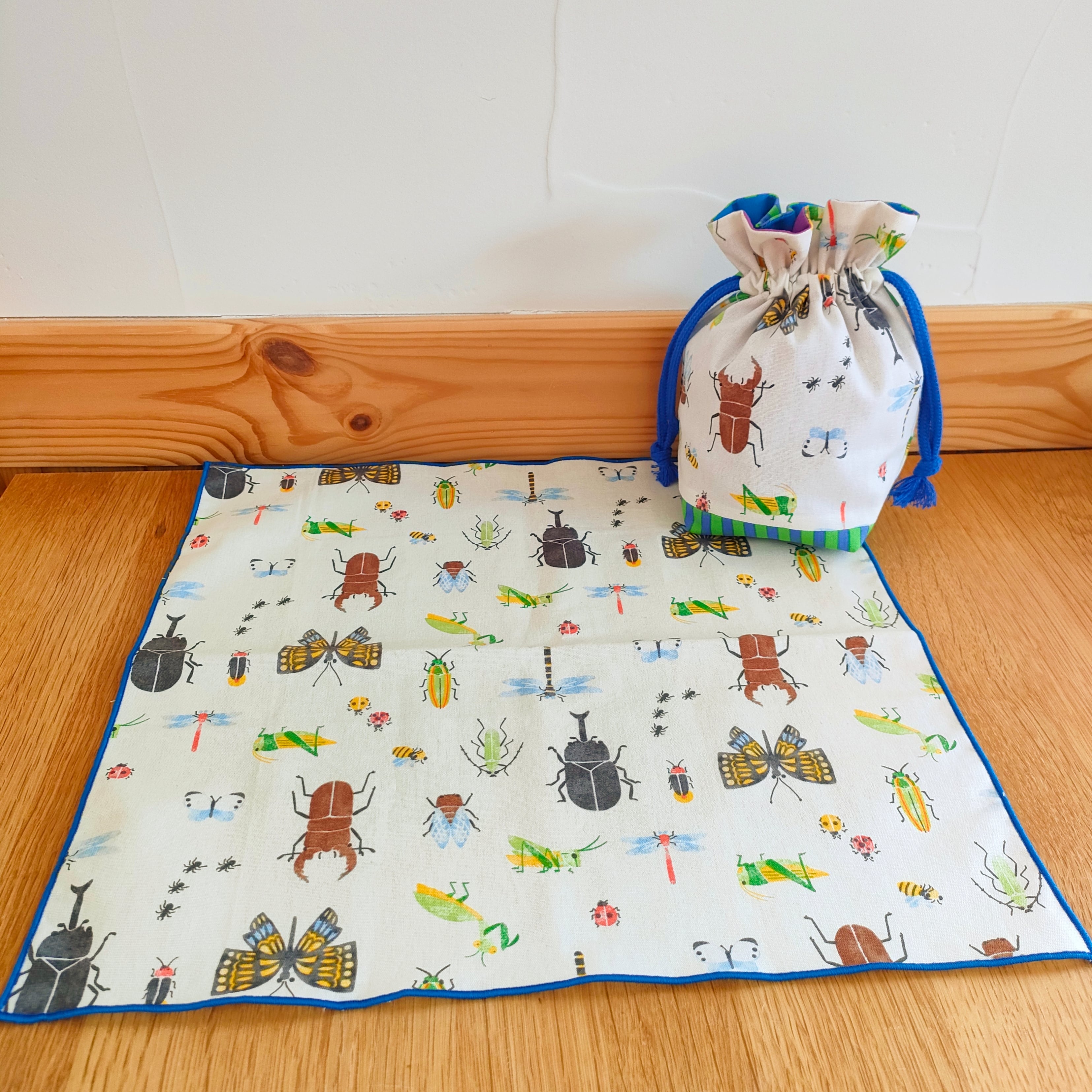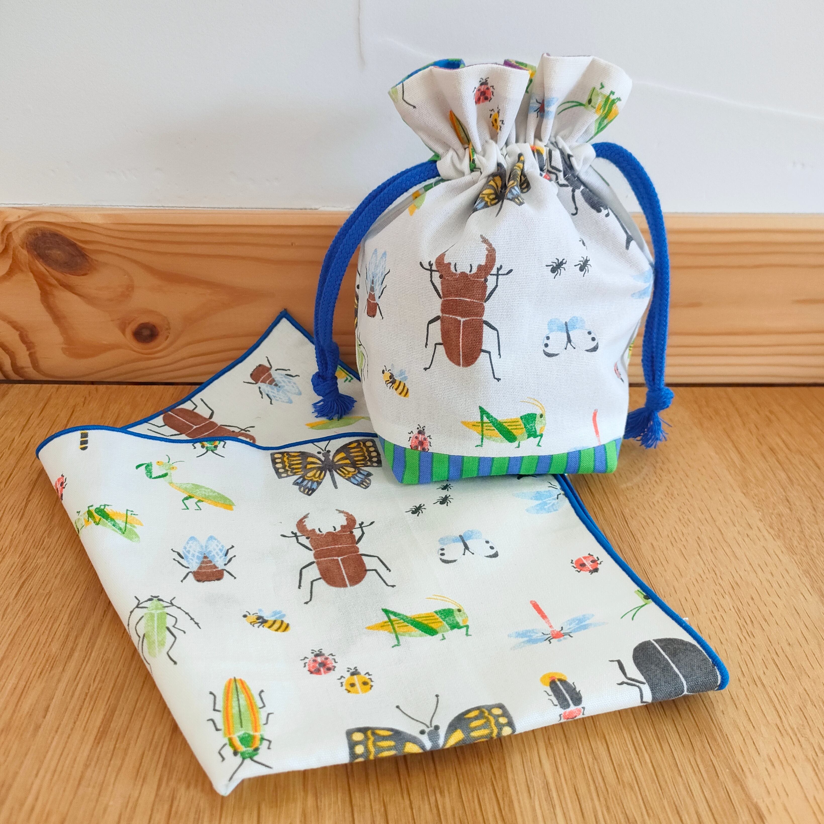 巾着はカブトムシがメインの面、