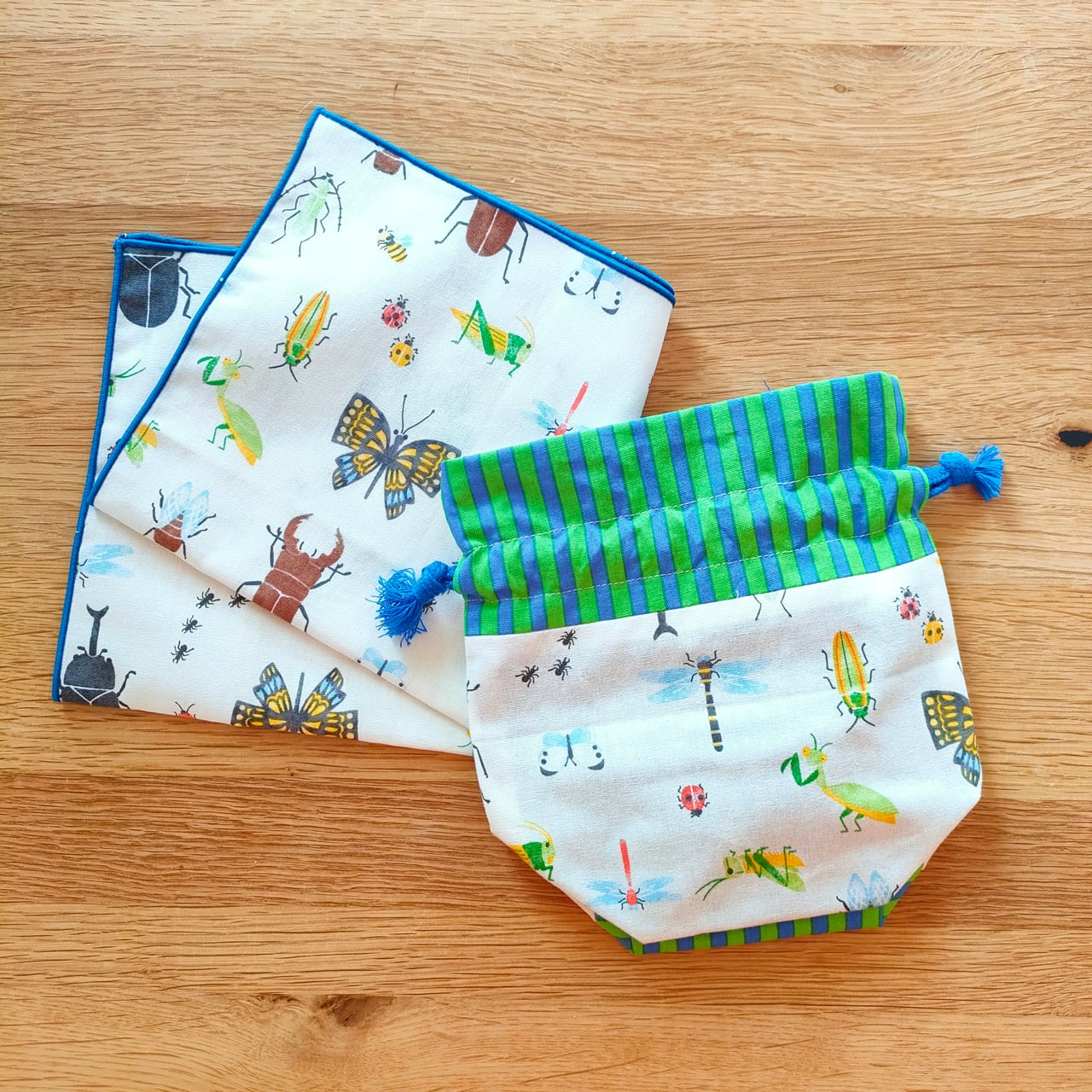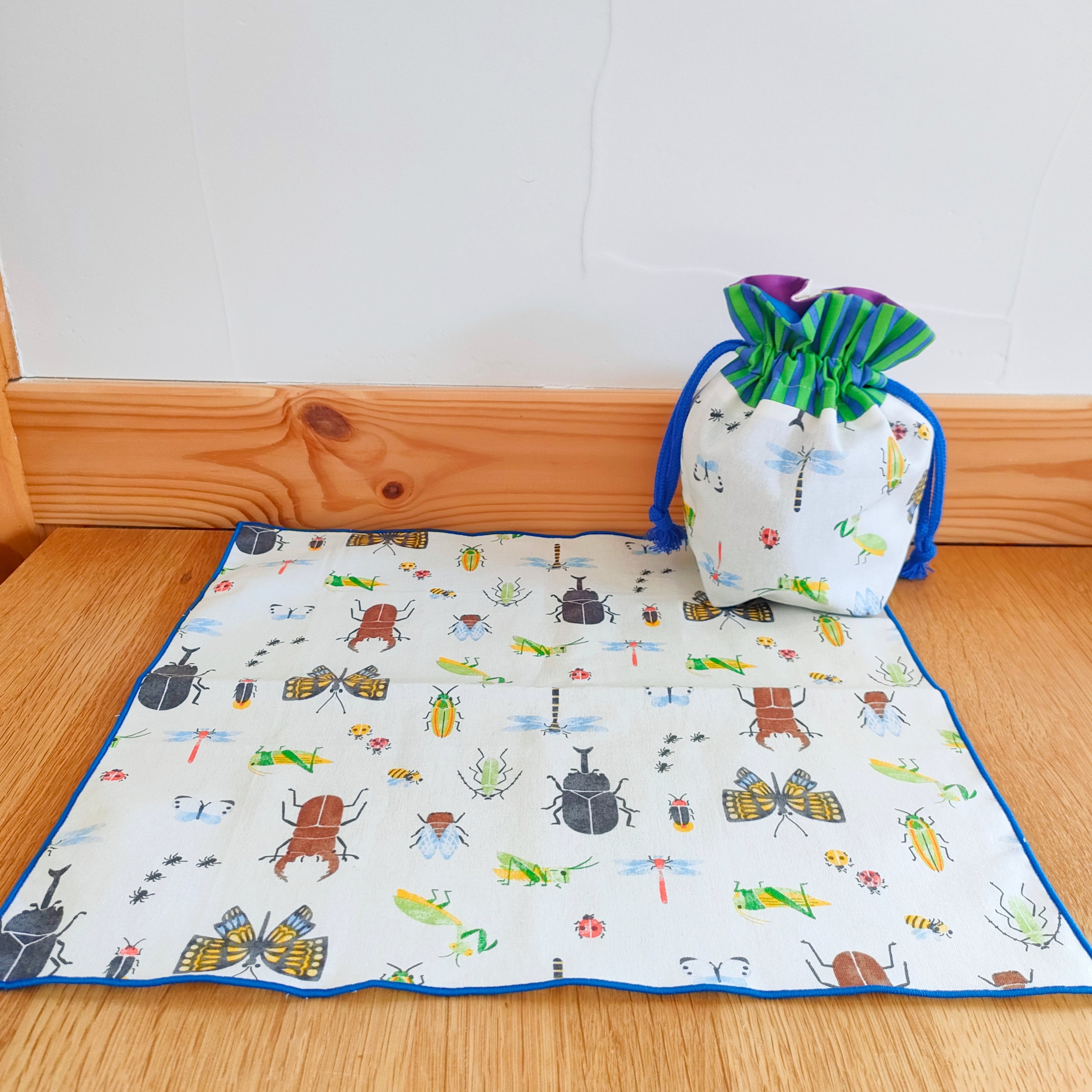 可愛い虫たちが並ぶコップ袋とランチョンマット!