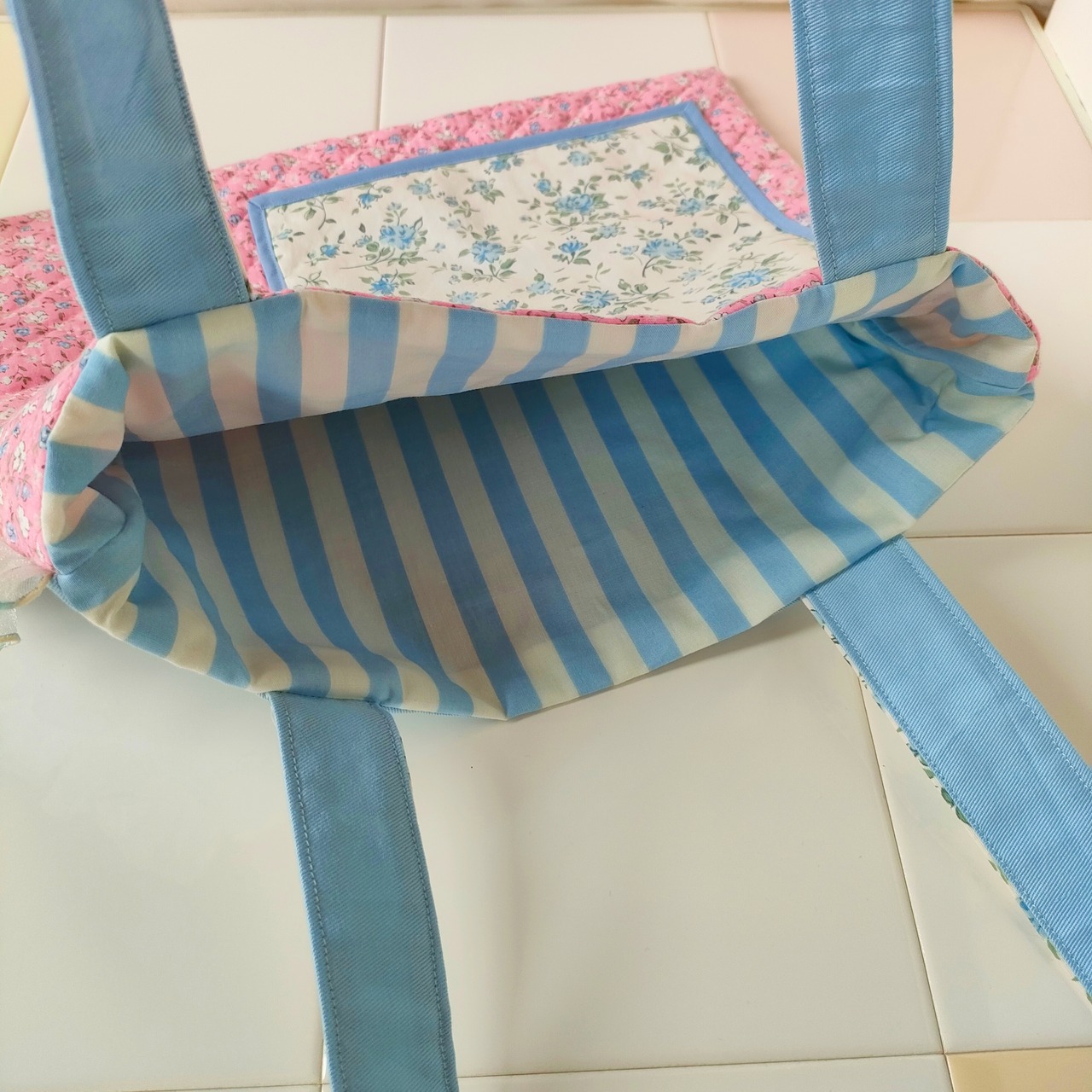 ブルーのお花柄を表にして作り、