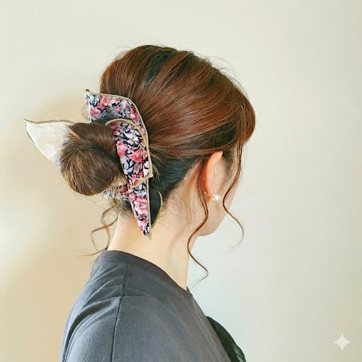 (写真はシュシュ自体のデザインは少し異なります。)