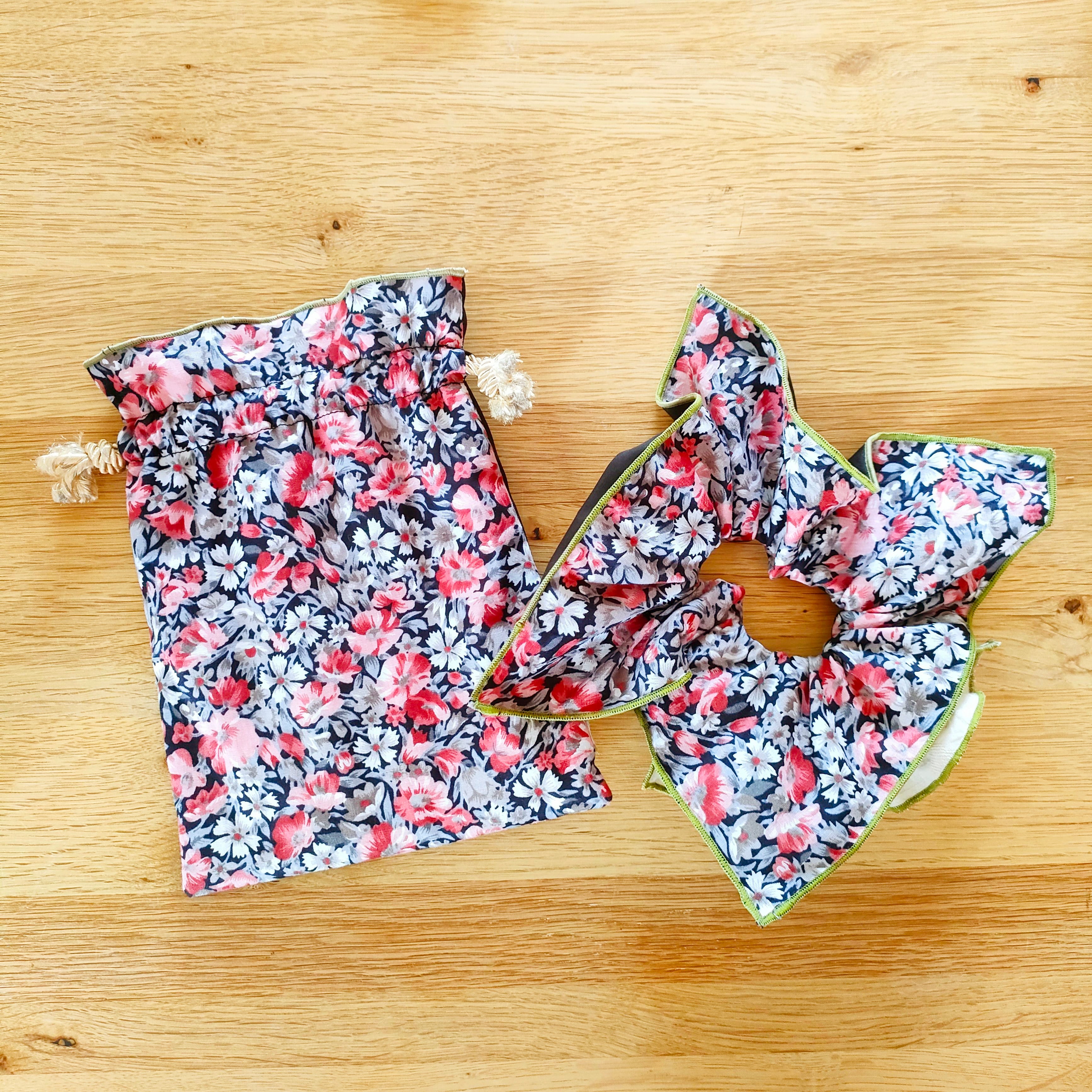 シュシュの縁には巻ロック加工にて、