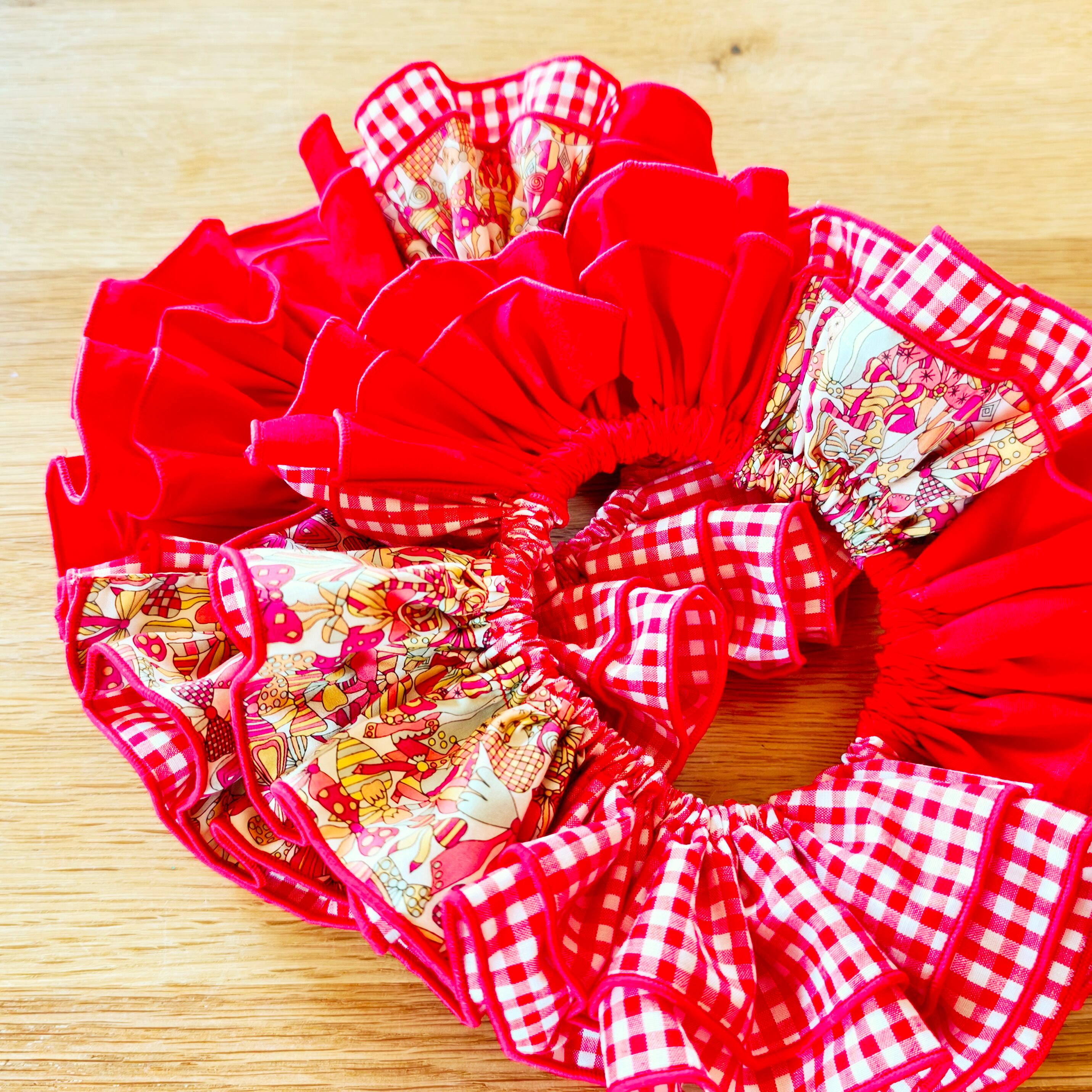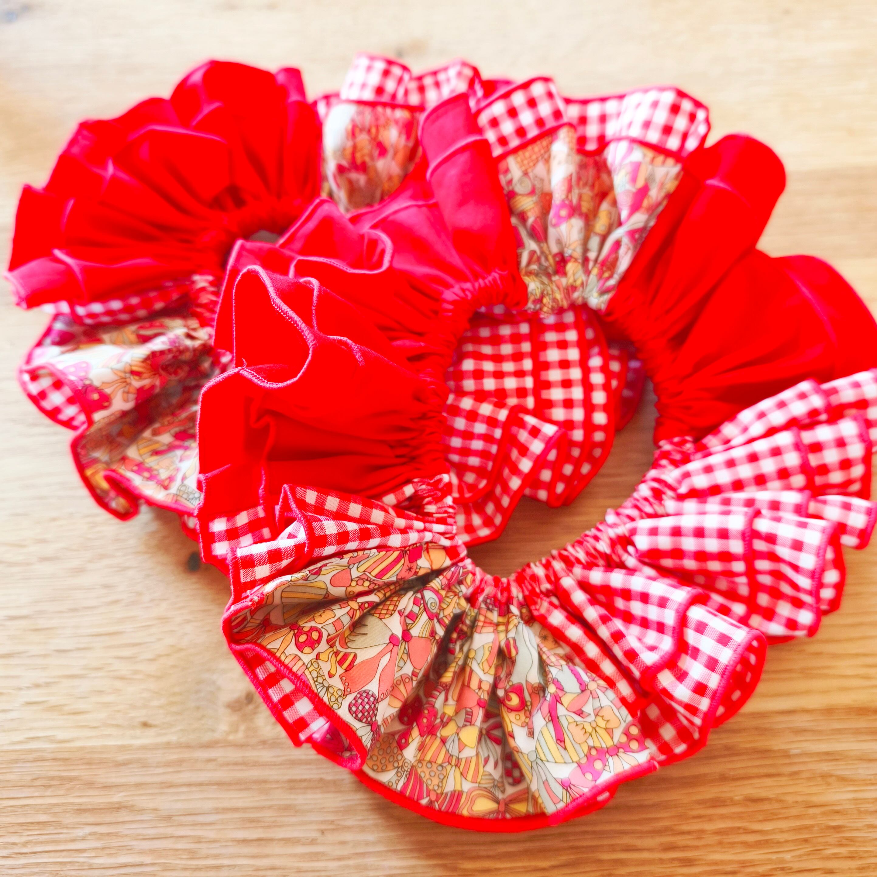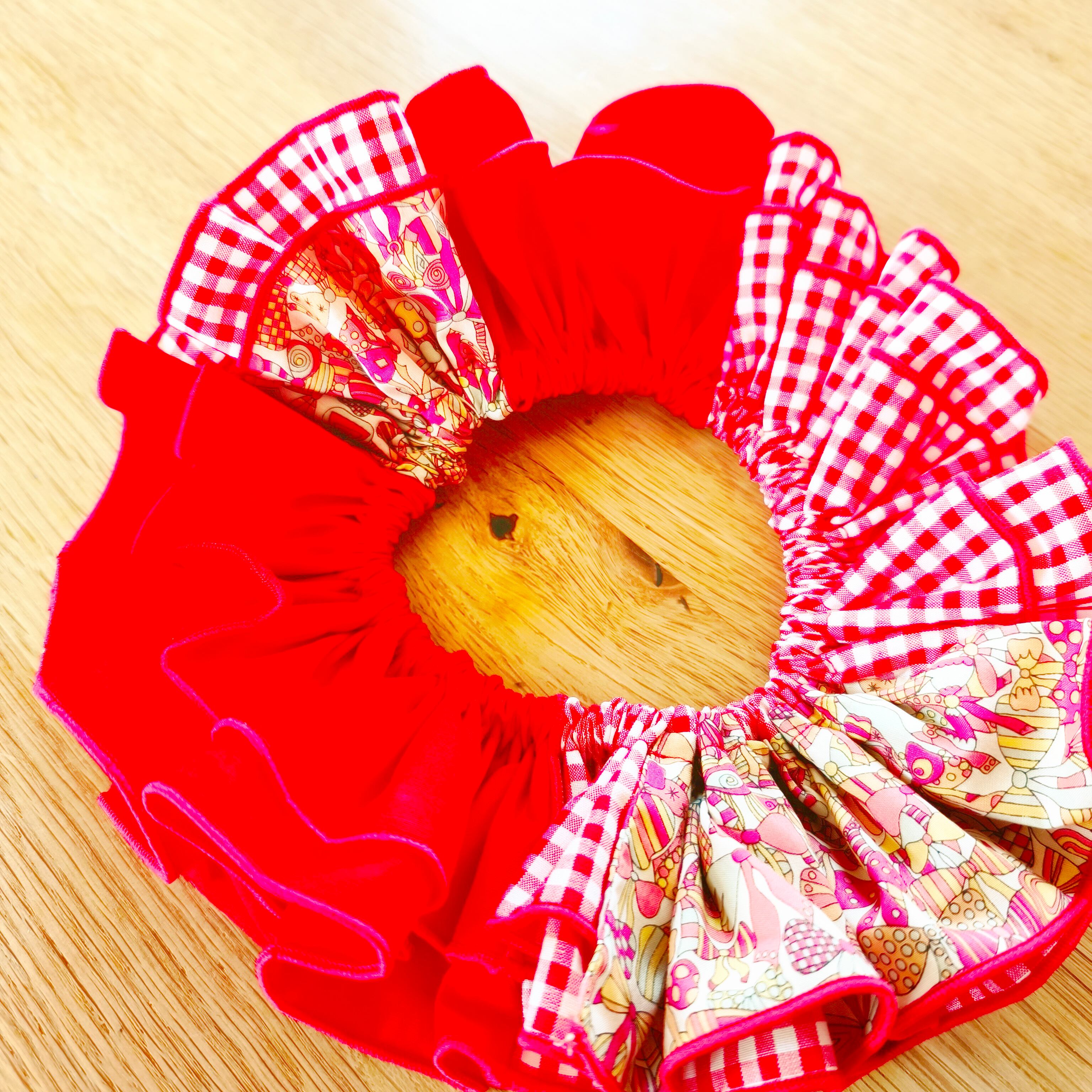 ボリュームシュシュ/いちご *.❤︎₊ ⊹ リバティプリント「ジェニーズ・リボンズ」/【おとな乙女部】