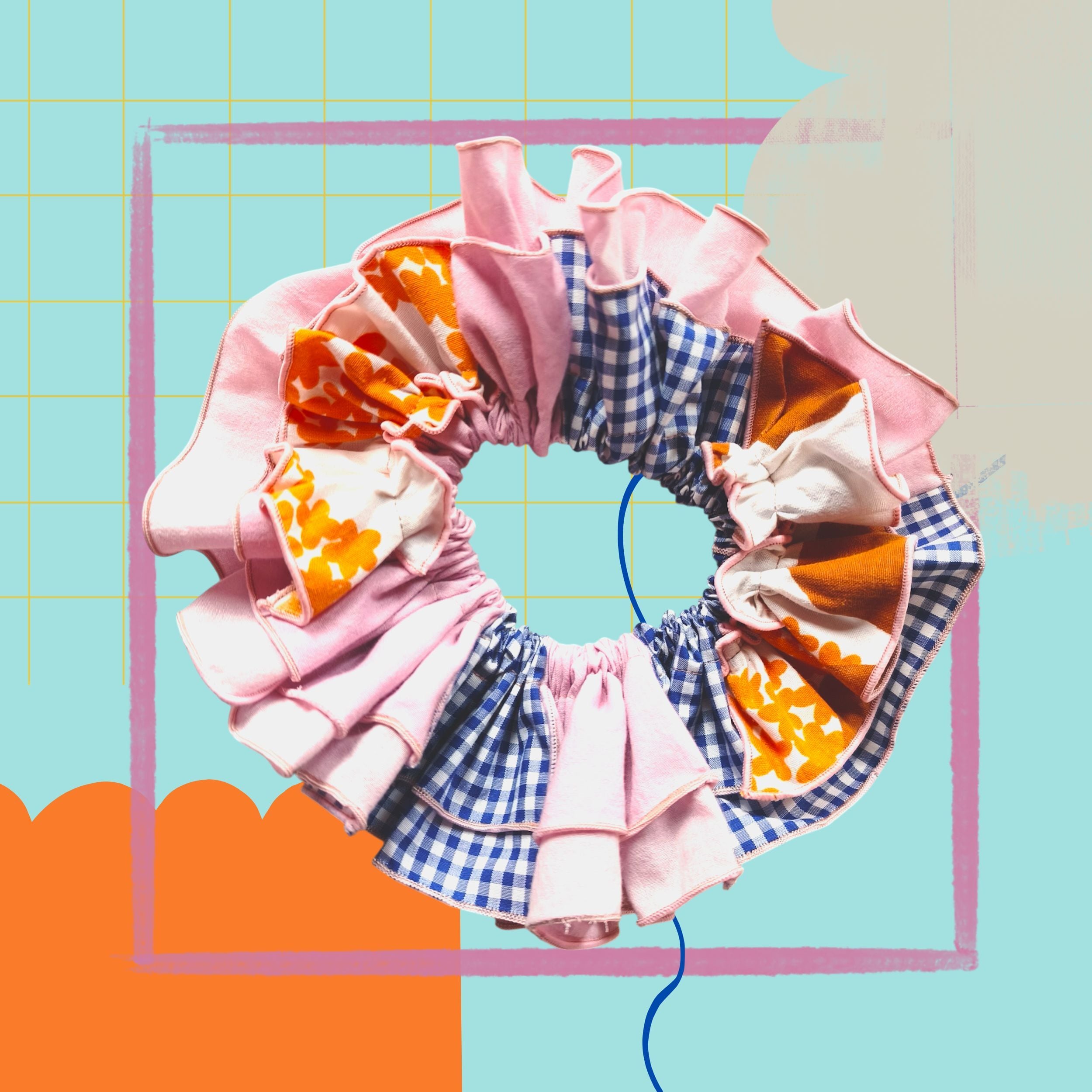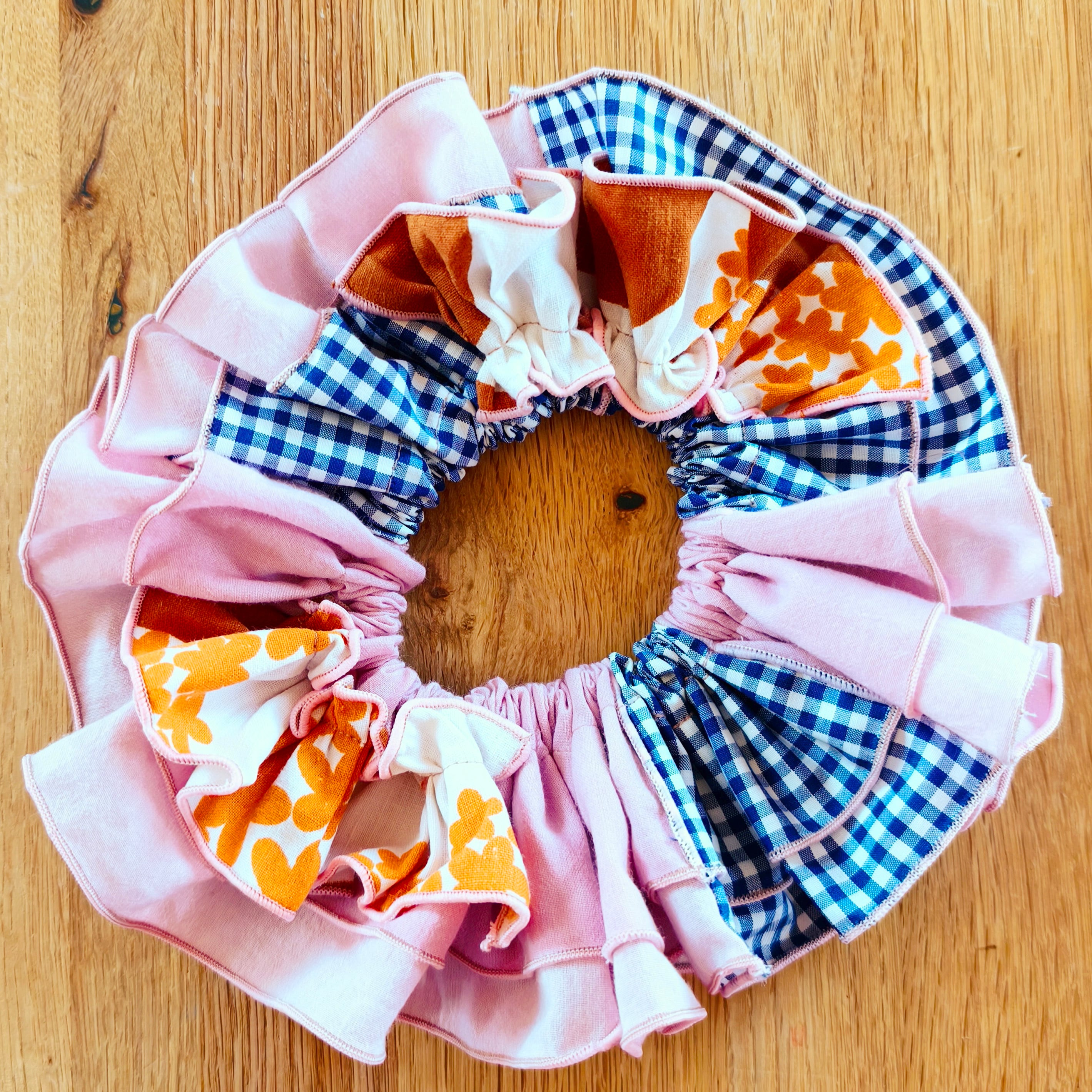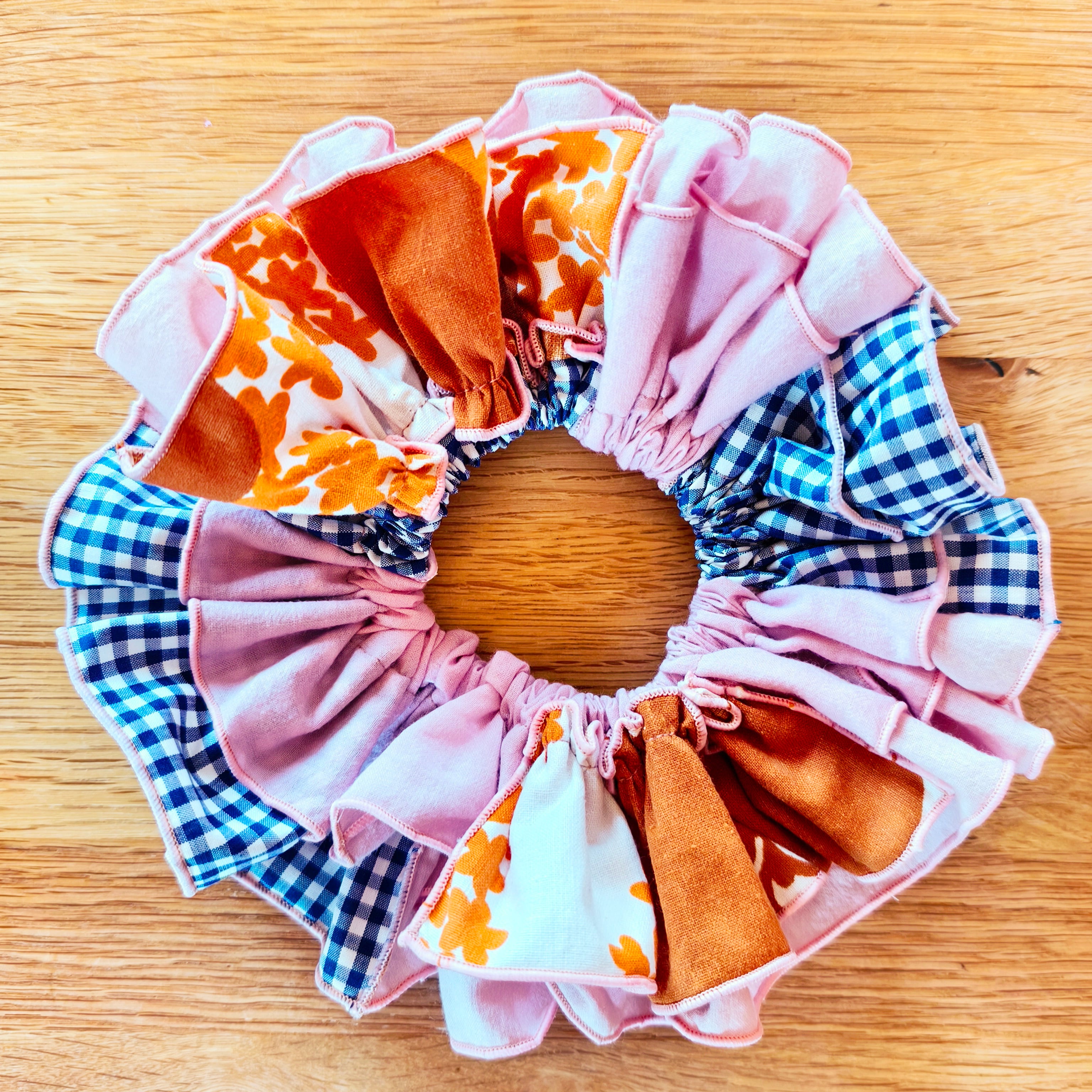 ボリュームシュシュ/ときめきを纏う-`✦´-北欧ヴィンテージ花柄生地とギンガムチェック/【おとな乙女部】